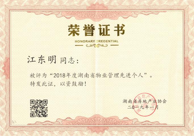 2018年度湖南省物業(yè)管理先進個人