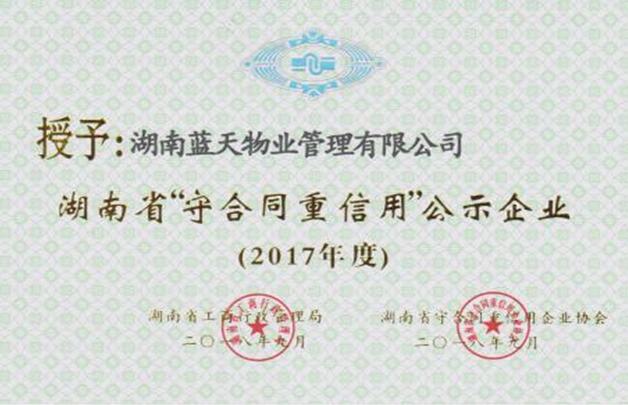2017年度湖南省“守合同重信用”單位稱號