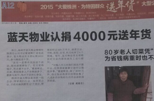 藍天物業(yè)認捐4000元愛心送年貨