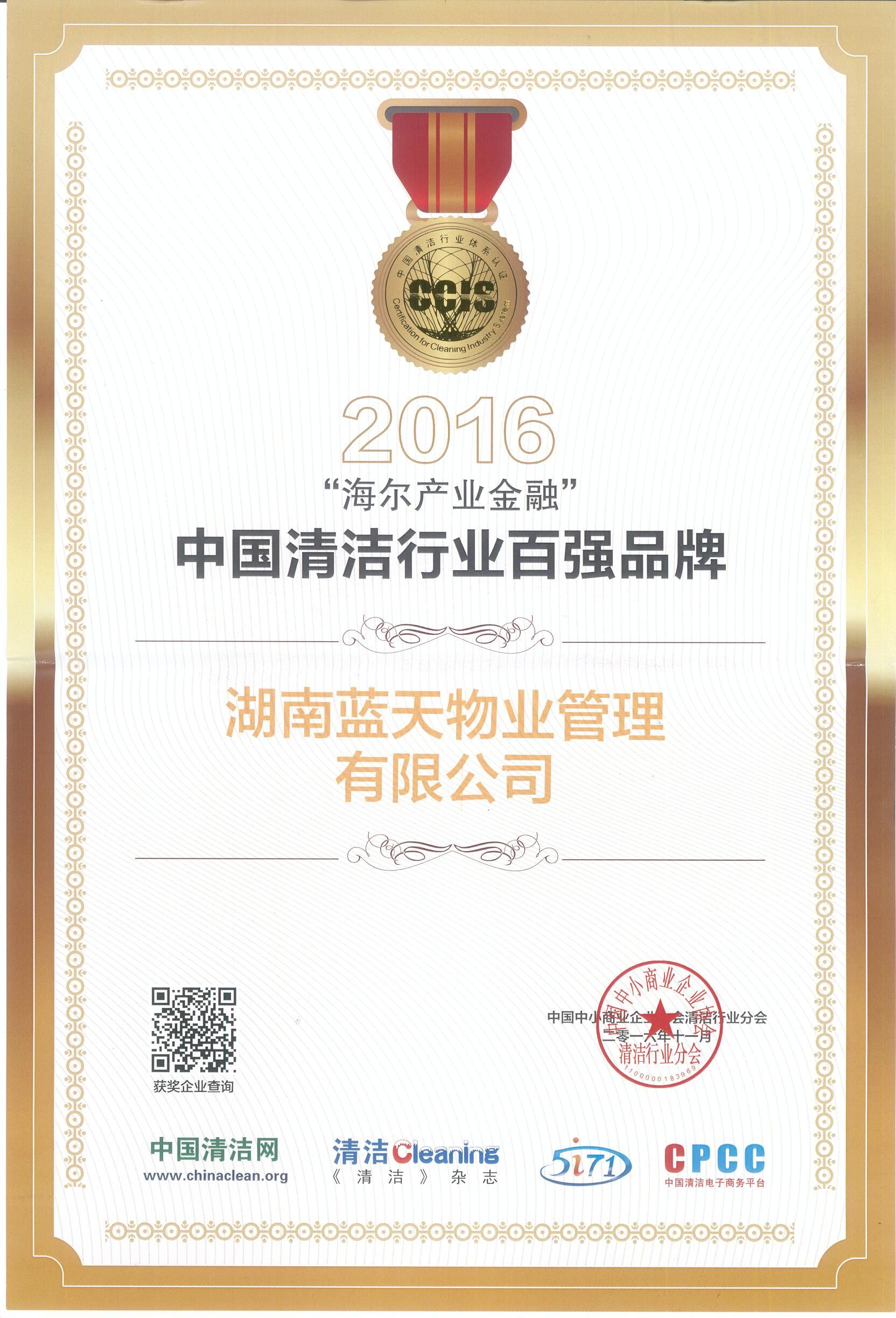 9月21日,中國中小商業(yè)企業(yè)協(xié)會清潔行業(yè)分會(簡稱“中清協(xié)”) 在中國商業(yè)聯(lián)合會、中國中小商業(yè)企業(yè)協(xié)會及各省市清潔環(huán)衛(wèi)協(xié)會的指導支持下,以企業(yè)的能力、品質、聲譽、企業(yè)文化和社會影響等指標為參考,綜合企業(yè)的其他條件,經專家委員會審定,推出了100家規(guī)模較大、業(yè)績良好和具有重要影響力的中國清潔環(huán)衛(wèi)行業(yè)標桿企業(yè),湖南藍天物業(yè)管理有限公司榜上有名。