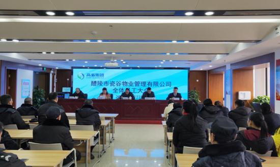 1月27日上午,醴陵市瓷谷物業(yè)管理有限公司全體員工大 會(huì)在高新集團(tuán)二樓會(huì)議室召開,標(biāo)志著瓷谷物業(yè)正式成立運(yùn)營。高新集團(tuán)總經(jīng)理謝智勇、副總經(jīng)理?xiàng)钸M(jìn)、產(chǎn)投公司副總經(jīng)理湯潔、瓷谷物業(yè)執(zhí)行總經(jīng)理?xiàng)钗幕蓉?fù)責(zé)人參加會(huì)議。